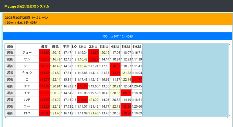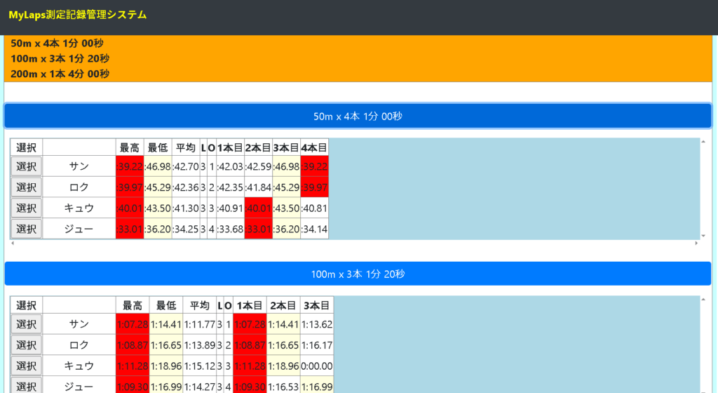 Mylaps TimeSystem(競泳)は簡単に測定メニューの設定ができ、設定したメニューは保存、呼び出しが行えます。もちろん、呼び出したメニューは追加、削除、泳者の追加等可能で、状況に応じてすぐに対応が可能です。